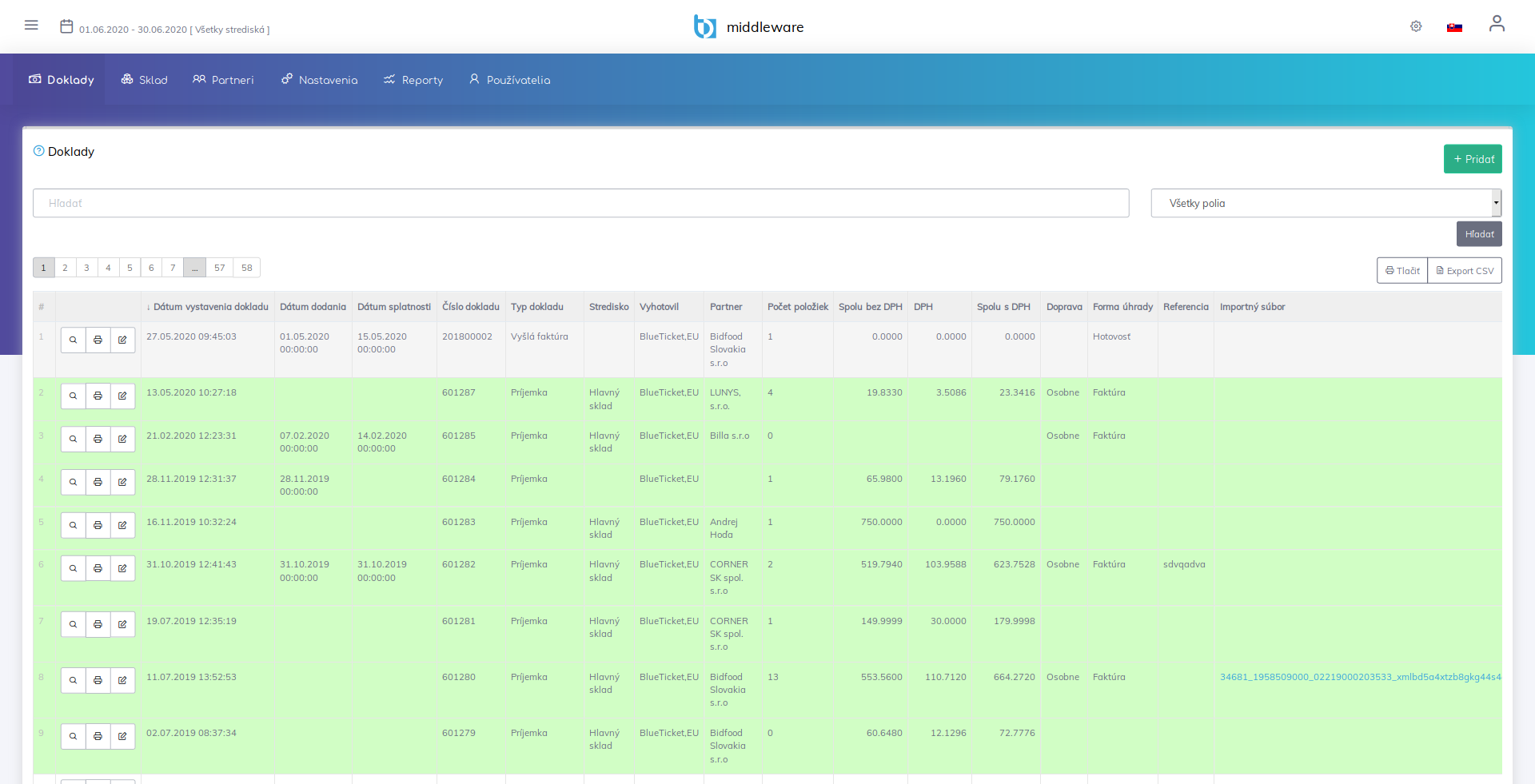 V tejto časti môžete vytvárať a prehľadávať už vytvorené doklady. Všetky typy dokladov sa vytvárajú a ukladajú práve v tejto časti.